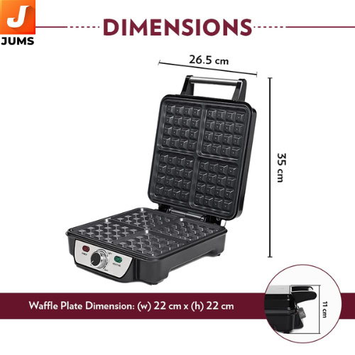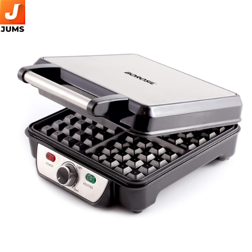 Brand: Borosil — known for quality kitchen appliances in India. Model: Jumbo Waffle Maker (BWM04) — designed for home use. Power: 1100 W — heats up quickly for faster waffle cooking. Capacity: Makes 4 jumbo-sized waffles at once — great for families or guests.