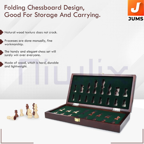 Brand: Niwlix Board Size: Approx. 9.5 x 9.7 inches Board Type: Wooden magnetic chess board (compact & folding) Material: Wood Special Feature: Magnetic pieces for stable play Design: Folding board with piece storage Theme: Indoor Game, Strategy Genre: Board Game Number of Players: 2 Ideal For: Kids, Teens, Adults – Learning, Practice & Travel