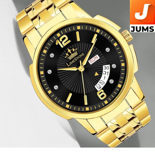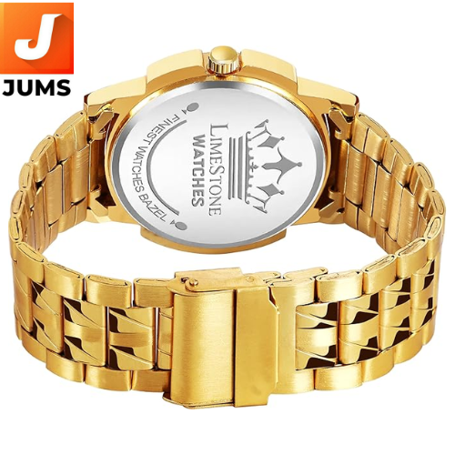 Brand: LIMESTONE Model: Day & Date Original HMTS Gold Plated Adjustable HMTS Bracelet Quartz Analog Watch Target Audience: Men Movement Type: Quartz Display Type: Analog Case Material: Stainless Steel (Gold Plated) Band Type: Adjustable HMTS Bracelet (Gold Plated) Functionality: Day & Date Function Accurate Timekeeping Adjustable Band for Comfort Design: Elegant Gold Plating with a Classic, Sophisticated Style Water Resistance: Typically around 30 meters (Verify specifics) Additional Features: Durable and Stylish Construction Ideal for Formal, Semi-Formal, and Casual Wear Intended Use: Everyday use, gifting, special occasions, and business events Battery Life: Long-lasting battery typical for quartz watches