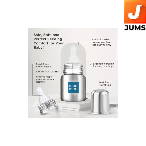 Brand Mee Mee Colour Silver Material Type Free BPA Free Item Weight 150 Grams Bottle nipple type Vented Capacity 120 Milliliters Bottle Type Anti-Colic Bottle Age Range (Description) Baby Number of Items 1 Is Dishwasher Safe No
