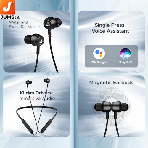 Rockerz 103 V2 Pro is an affordable Bluetooth wireless neckband designed for everyday music listening, calls, and casual gaming. It features Bluetooth v5.2 connectivity with dual-pairing support and a stable 10 m range, letting you switch seamlessly between devices. Powered by dual 10 mm drivers and Signature Sound, it delivers punchy audio with a balanced bass response.