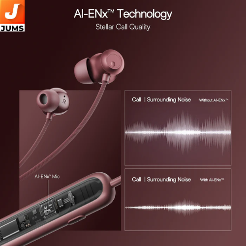 Rockerz 210 ANC is a feature-rich wireless Bluetooth neckband earphones designed for everyday listening with added noise-blocking performance. It offers up to 30 dB Active Noise Cancellation to reduce ambient sounds for immersive music and calls, and AI-ENx™ technology helps deliver clearer voice quality during calls.