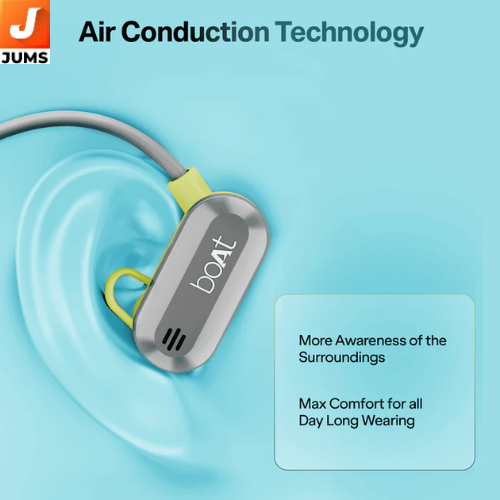 Bluetooth V5.3 Connectivity: Ensures reliable wireless connection and efficient power usage. Air Conduction Technology: Innovative open-wearable design that directs sound without fully blocking ears for comfortable listening. Dual Mics with AI-ENx™ Noise Cancellation: Helps deliver clearer voice quality for hands-free calls in noisy environment