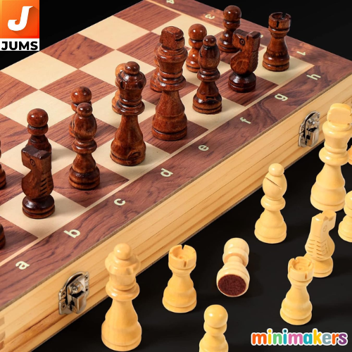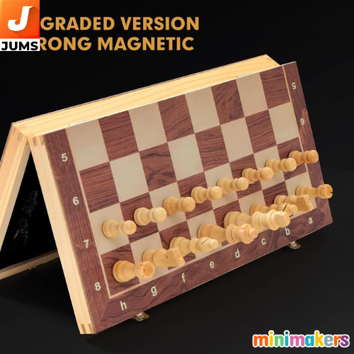 Product Name: Standard Chess Board Set Magnetic Board Size: 12 Inches (Foldable) Board Type: Wooden Chess Board Set (Handcrafted) Special Feature: Magnetic pieces (travel-friendly) Design: Folding board with storage compartment Material: Wood (Board & Pieces) Theme: Indoor Game, Strategy Genre: Board Game Number of Players: 2 Ideal For: Kids, Teens, Adults – Learning & Practice Use: Travel, Home Play, School, Gifts