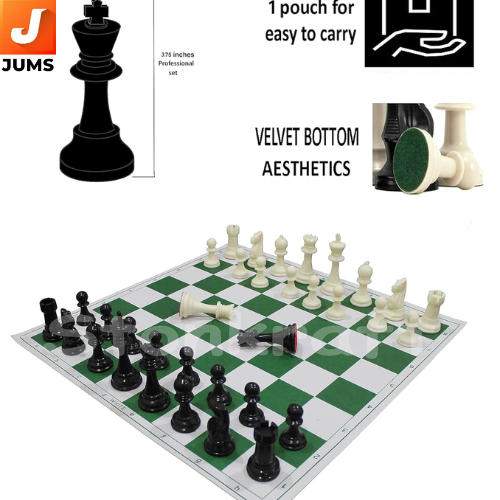 Brand: StonKraft Board Size: 18.2″ × 18.2″ (Tournament Standard) Board Type: Foldable Vinyl Chess Board (Green/White) Material: Vinyl board + Solid Plastic Pieces Pieces Included: 34-piece set with TWO extra queens (standard tournament set) King Height: Approx. 3.75″ (Standard Tournament Size) Color: Green board with contrasting squares Foldable: Yes (portable, travel-friendly) Ideal For: Professional players, club play, learning, travel Players: 2