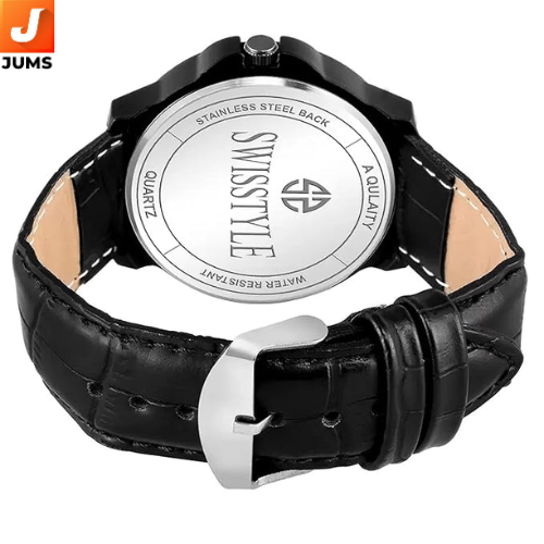 The SWISSTYLE Analog Men's Watch offers a sleek and stylish design, perfect for individuals who want a functional yet fashionable timepiece. This watch typically features a round dial in black or white, providing a clean and simple aesthetic that works well with any outfit, whether for business or casual wear. The stainless steel case ensures durability, giving the watch a strong and polished appearance. Depending on the model, the strap can either be made of stainless steel or genuine leather, both offering comfort and a touch of elegance. The combination of stainless steel and leather gives the watch a versatile look that can be dressed up or down to match various occasions.
