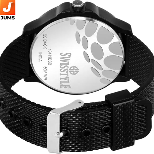 The SWISSTYLE Blue Dial Analog Watch for Men is a striking timepiece that combines modern design with reliable functionality. The most prominent feature of this watch is its vibrant blue dial, which offers a clean, eye-catching look. The silver-tone hour markers and hands contrast beautifully with the blue background, making it easy to read the time in any lighting. The round stainless steel case adds a sleek and polished touch, offering durability and elegance. The stainless steel or genuine leather strap (depending on the specific model) complements the dial perfectly, ensuring comfort and style. The strap is designed to fit securely on the wrist, providing both long-lasting wearability and a premium feel.