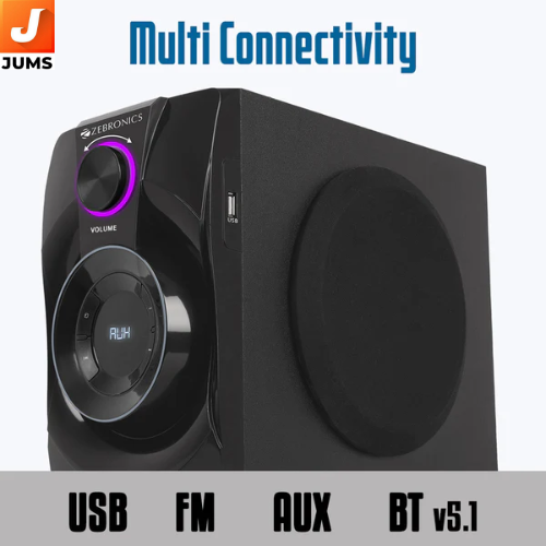 2.1 channel speaker BT v5.1 / USB / AUX / FM LED display Remote control Wall mountable Volume, Bass & Treble Control
