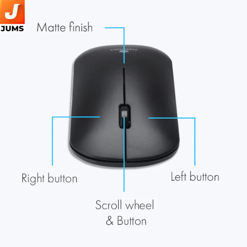 2.4 GHz Wireless Connection: Stable wireless performance via a USB nano receiver for plug‑and‑play use. 1200 DPI High‑Precision Optical Sensor: Smooth and accurate cursor tracking suitable for everyday tasks. 3 Buttons: Standard left/right click and scroll wheel button for basic navigation. Smart Energy‑Saving Mode: Helps conserve battery life during idle periods. Receiver Storage: Nano USB receiver can be hidden inside the mouse shell to reduce loss. Works on Most Surfaces: Optical tracking performs reliably across desks, tables, and mouse pads. Battery Powered: Runs on 1 × AA battery (not included). Wireless Range: Up to ~10 m in open space for flexible movement. Lightweight & Stylish: Compact with a matte finish design for comfortable everyday use.