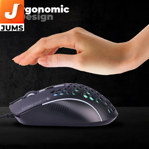The Zebronics Flash is a wired ergonomic gaming mouse designed for budget‑friendly gamers and everyday users. It connects via a USB cable (1.5 m length) for reliable plug‑and‑play use and features adjustable DPI levels (1200/1800/2400/3600) with a DPI switch for on‑the‑fly sensitivity changes. The mouse includes LED lighting for a gaming look, high precision optical tracking, and four buttons for basic control. Its ergonomic shape and optical sensor make it comfortable and responsive for both casual computing and light gaming sessions.