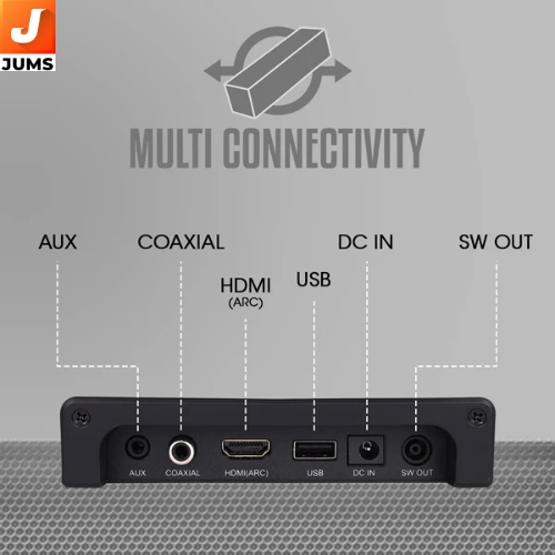 Multi Connectivity (BT v5.0 | HDMI (ARC) | Coaxial | USB | AUX) 10.16 cm Subwoofer LED indicator Volume/Media Control Compact Sound Bar with Dual Drivers External Power Adapter Glossy Finish Powerful Bass Remote control