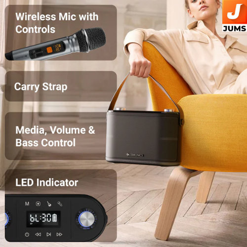 The Zebronics Protone One is a portable Bluetooth party speaker designed for powerful sound, versatile playback options, and fun features like karaoke and TWS pairing — ideal for gatherings, small events, and casual music listening