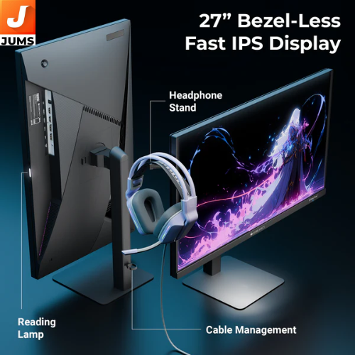 27″ (68.5 cm) Full HD (1920×1080) IPS panel for clear, detailed visuals with wide viewing angles. 180 Hz refresh rate for ultra‑smooth motion and reduced blur during fast gameplay and video. Bezel‑less design for a modern, immersive look. Anti‑glare coating to reduce reflections in various lighting conditions. ~300 nits brightness for bright visuals